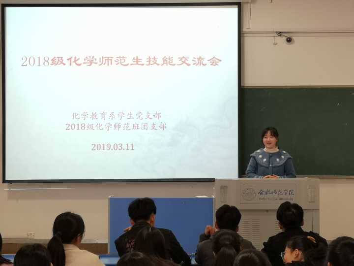 3月11日下午,化学教育系员工党支部主办、2018级化学师范班团支部承办化学与化学工程公司师范生技能交流会。2018级化学师范班全体员工参加此次交流会,会议由班主任王庆林主持。