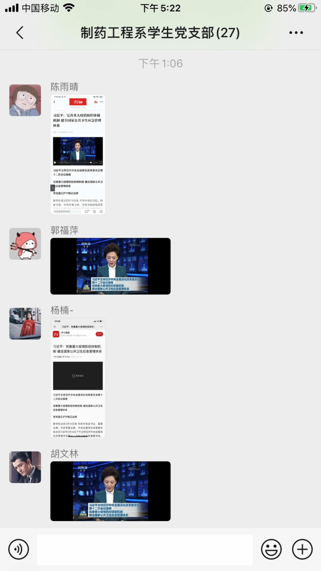 习近平总书记指出,这次抗击新冠肺炎疫情,是对国家治理体系和治理能力的一次大考。要研究和加强疫情防控举措,健全国家公共卫生应急管理体系,提高应对突发重大公共卫生事件的能力水平。制药工程系员工党支部全体党员通过线上学习了全文并展开交流研讨。