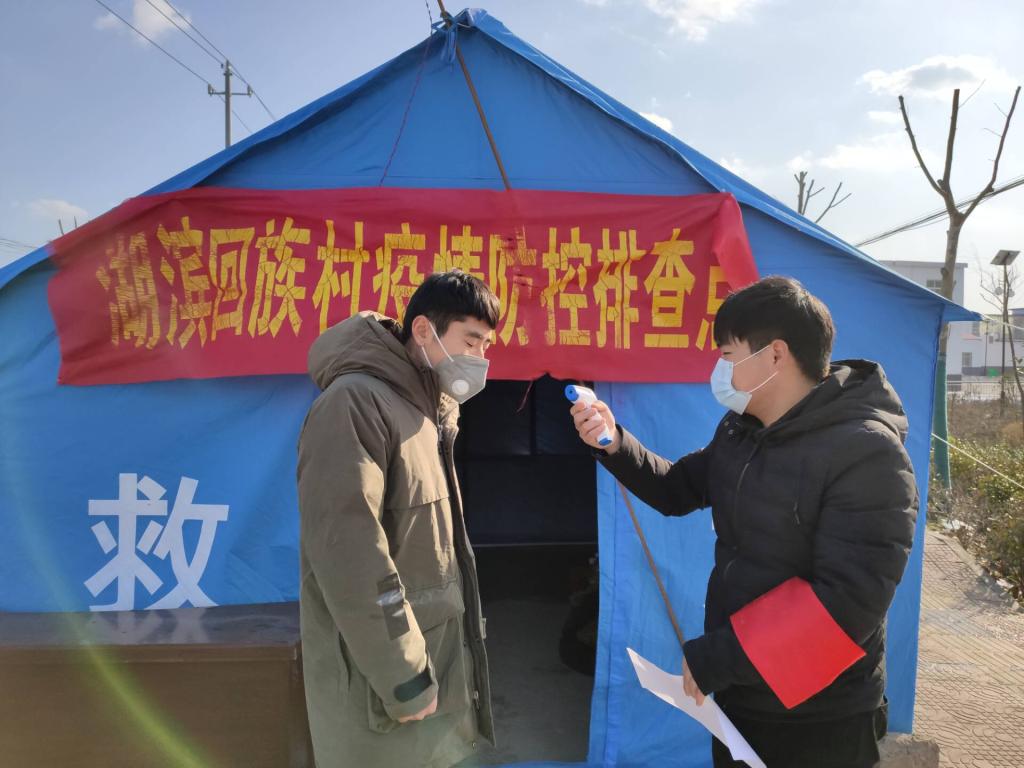 少数民族员工陶良路在寿县陶店回族乡疫情防控排查点参加志愿服务活动,每天守在卡口,做登记、量体温,严控防“疫”第一关。