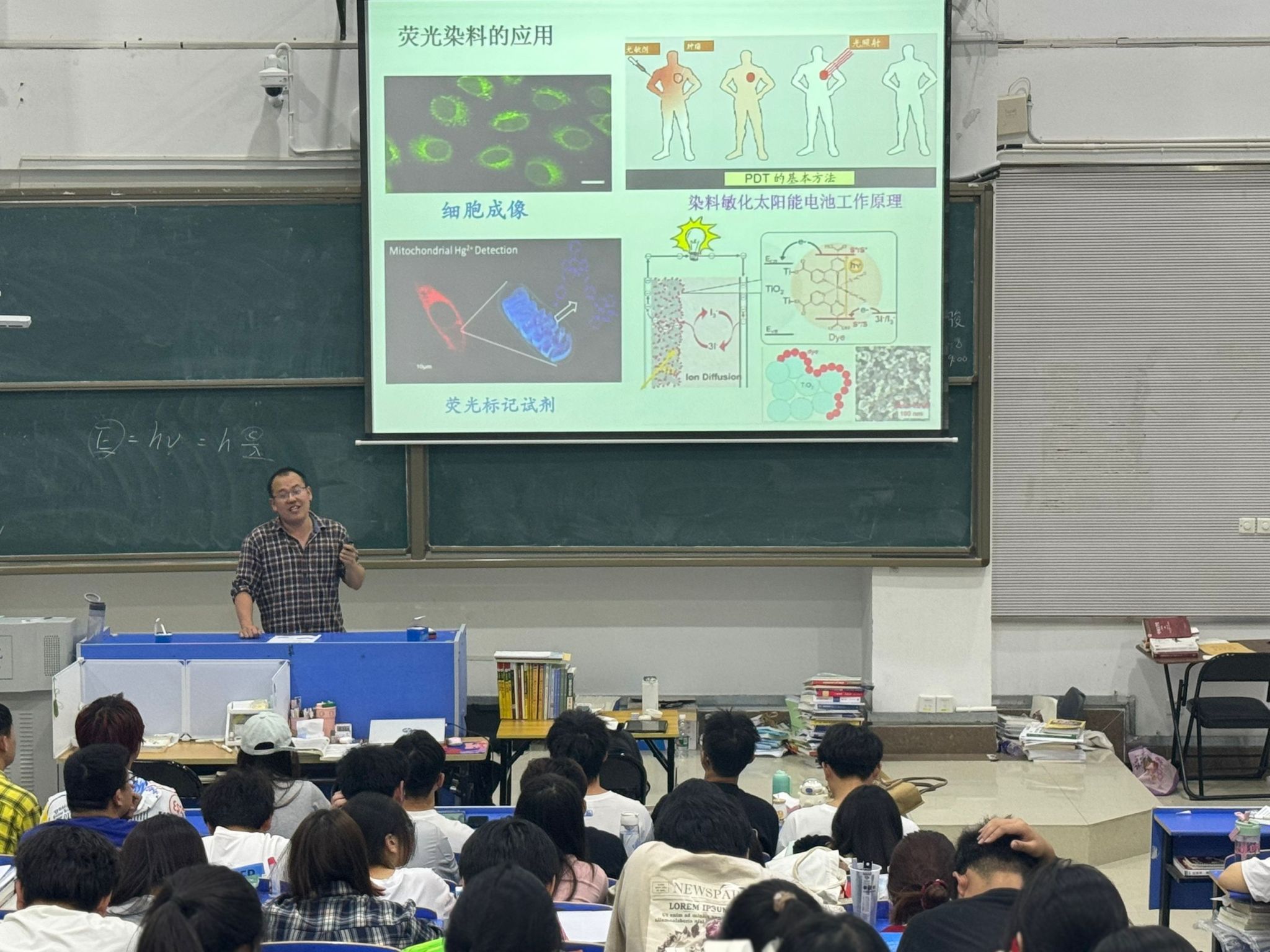 5月8日晚,william威廉英国官网在锦绣校区逸夫楼西阶1教室举行了一场题为“基于BODIPY分子的有机荧光染料研究”的行知讲座。本场报告由william威廉英国官网王骏老师主讲,化学专业部分员工聆听了讲座。