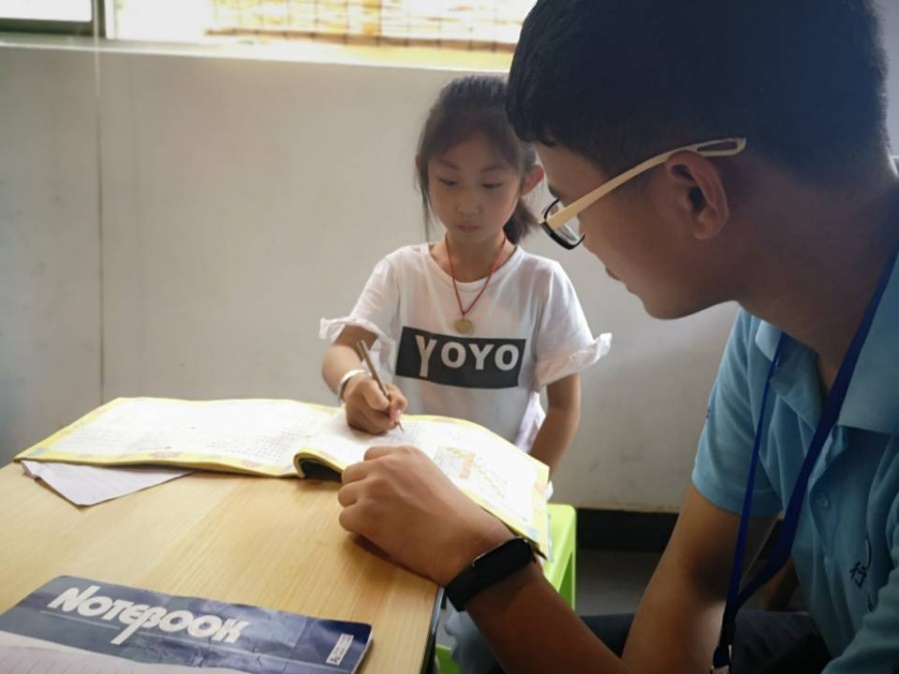 在课业辅导方面,面对小学员在学业上的困难,小先生们循循引导,举一反三。