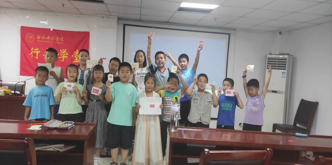 “姐姐,我的团旗画好了!” “姐姐,我的也好了!” “哥哥,你看我的这幅画好看吗?” ……面对小朋友们的热情邀请和分享,小先生们耐心倾听,悉心照料,用爱陪伴左右,用心呵护成长。为传递红色基因,引导孩子们热爱祖国,热爱社会主义,增进小学员们对红色知识文化的了解,小先生们带着小学员们一起学习了《光荣啊!中国共青团》这首歌,“我们是五月的花海,用青春拥抱时代;我们是初升的太阳,用生命点燃未来……”这首歌唱出了慷慨激昂,唱出了荡气回肠。小先生也鼓励小学员们学习英模前辈无私奉献、热爱祖国的精神品质,学习文化知识,成为对国家和社会有用的栋梁。之后小先生带着小学员们学习了一些建团的相关知识:学习了团史,认识了团徽,也亲手动手画了团旗。孩子们都很热情,也很积极主动,最终每个人都成功地画出了自己满意的团旗,小先生们也拍下了这值得记录的一刻。