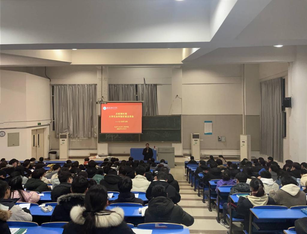 本网讯 为做好疫情防控常态化下就业指导工作,1月5日,化学与化学工程公司举办“后疫情时期老员工如何做好就业准备”专题讲座。由王庆林老师主讲,应邀2018届、2020届毕业生代表,2018级普本、2020级专升本在校同学参加。