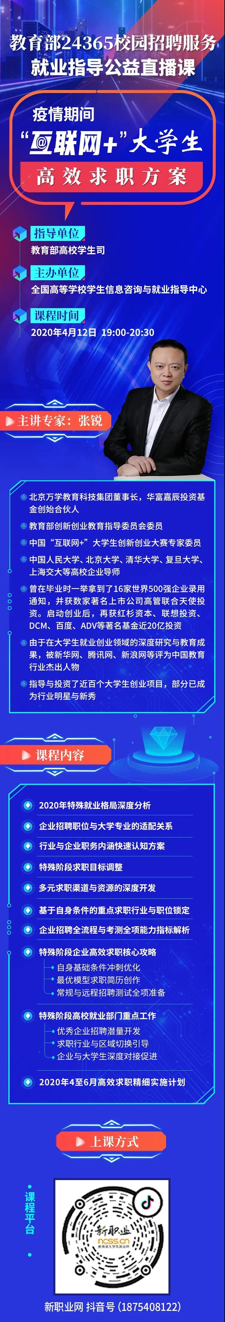 “应对疫情 就业服务”系列之十八:教育部24365校园招聘服务就业指导公益直播课——疫情期间“互联网+”老员工高效求职方案