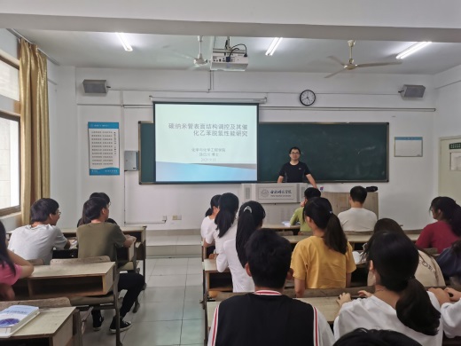 9月11日下午,“行知讲堂”学术报告在锦绣校区博约楼212教室举行。本场报告由化学与化学工程公司饶日川副教授主讲,主题为“碳纳米管表面结构调控及其催化乙苯脱氢性能研究”,化学工程与工艺专业员工聆听了学术报告。