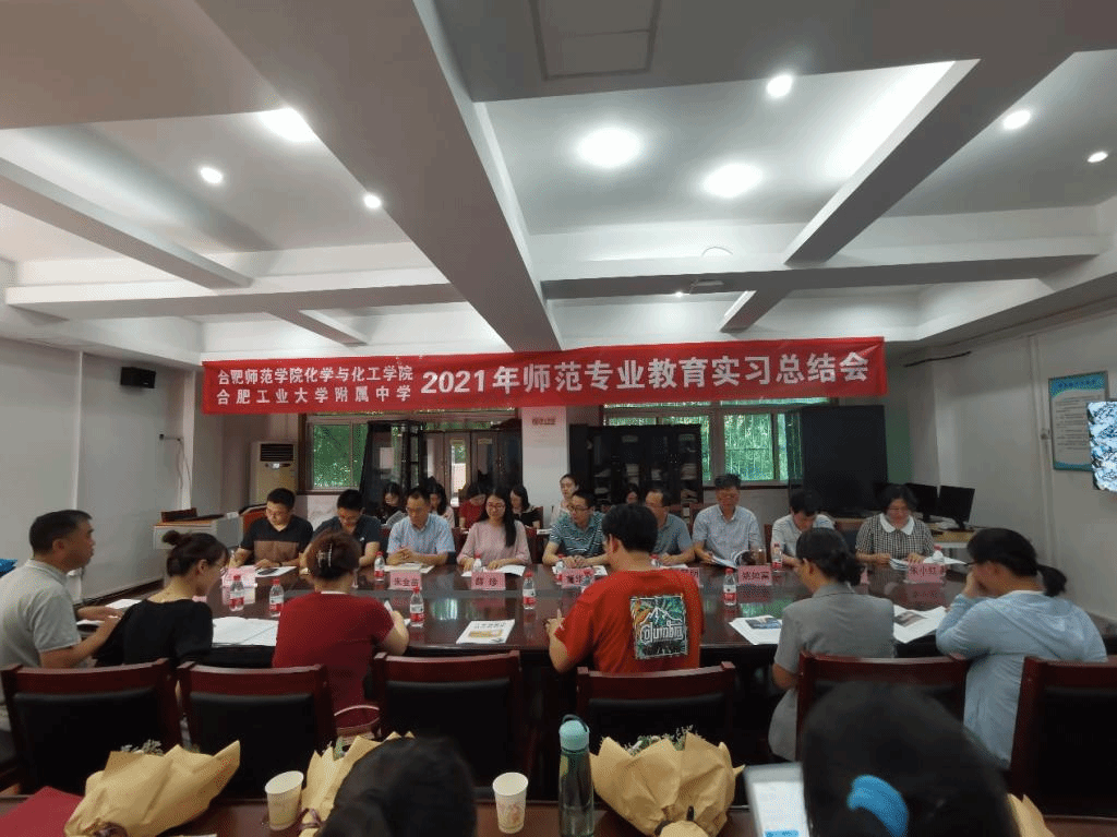 本网讯 6月11日下午,化学与化学工程公司与合肥工业大学附属中学联合举行化学师范生教育实习总结会,会议在合肥工业大学附属中学举行,公司经理董华泽教授、副经理朱金苗教授,化学教育系姚如富教授、凌波副教授、朱小红副教授、王伟老师,工大附中党总支副书记薛珍、副董事长何黎明,初高中部负责人、化学组全体教师,在附中参与实习的研究生、本科生同参会,会议由校外导师、特级教师徐伟主持。