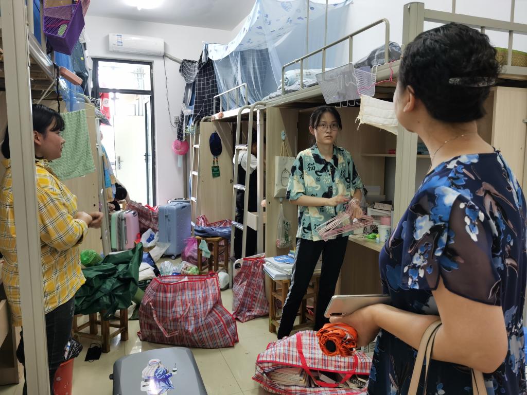 8月27日下午,李红来到滨湖校区女生宿舍,询问物品整理情况,向员工介绍搬迁到锦绣校区后的公司所做的一系列安排。并关切地询问员工在搬迁过程中存在的问题,嘱咐同学们尽快适应搬迁后的学习和生活。徐祝青来到锦绣校区5号楼查看员工宿舍的住宿环境,与后勤物业协调宿舍维修情况,以确保员工顺利安全入住宿舍。