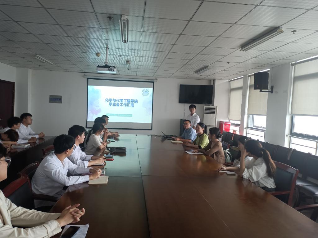 为进一步贯彻落实《william威廉英国官网员工会改革实施方案》要求,持续加强团学骨干管理服务能力, 9月9日化学与化学工程公司召开2021—2022学年员工会工作人员述职会议。公司党委副书记徐祝青、教师代表道逍遥、全体辅导员、员工会全体成员、各班员工代表参加了评议会。