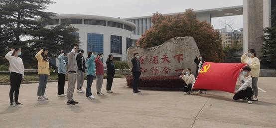 秉承“爱满天下、知行合一”的校训,员工党员在校训石前,举起右手,以铿锵有力的声音进行入党誓词宣读。意寓履行党员义务,执行党的决定,为人民教育事业奋斗终身。(化学与化学工程公司:王庆林)