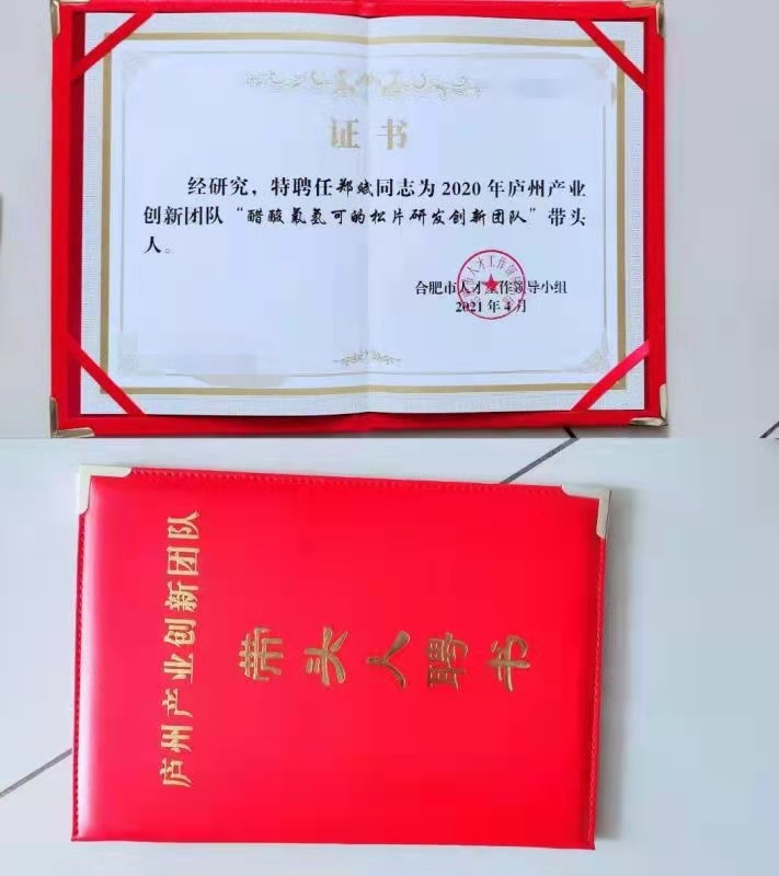 本网讯 近日,中共合肥市委组织部下发《关于印发2020年度庐州英才培养计划等人才项目入选名单的通知》(合组通字〔2021〕5号),化学化工公司制药工程系专任教师郑斌带领华益药业科技(安徽)有限公司申报的“醋酸氟氢可的松片研发创新团队”入选2020年度庐州产业创新团队,郑斌同志被合肥市人才工作领导小组聘任为团队带头人。