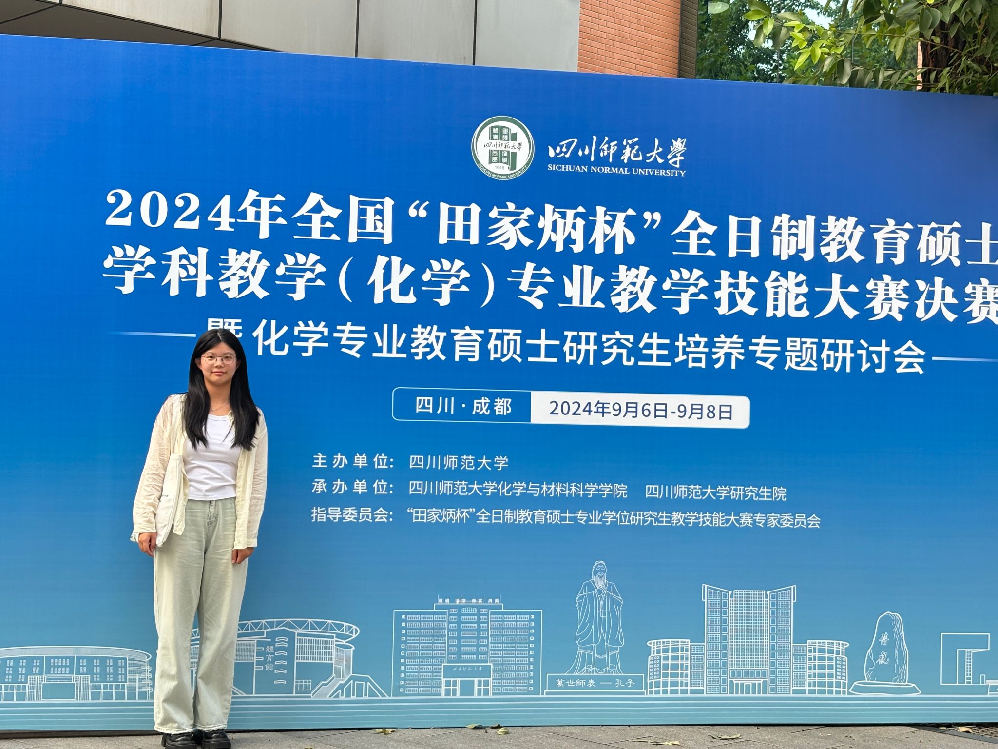 2024年9月6日-8日,全国“田家炳杯”全日制教育硕士学科教学(化学)专业教学技能大赛决赛在四川师范大学举行,本次大赛的初赛共有来自全国87所高校的400余名全日制学科教学(化学)专业研究生参加,参赛高校占2023年招收学科教学(化学)专业教育硕士院校的95%。通过初赛的选拔,共有81所高校198名全日制学科教学(化学)专业研究生进入决赛,公司2023级张婉婷同学在导师方璐和董雄辎老师的指导下,顺利进入决赛。经过激烈角逐,最终张婉婷同学荣获全国优秀奖。